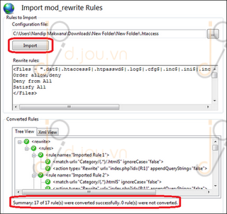 Hệ thống windows hosting của Tenten được cài đặt trên nền windows 2008 và sử dụng IIS7.5 Ngày nay, IIS thường được sử dụng để host các ứng dụng PHP, bởi vì khi sử dụng IIS bạn có lợi thế là vừa có thể host các ứng dụng viết bằng Python, PHP và đặc biệt là các ứng dụng viết trên nền ASP.NET. IIS hỗ trợ khá tốt cho PHP, tuy nhiên, đôi khi các developer sử dụng quen Apache sẽ gặp khó khăn với IIS. Một trong những khó khăn đó là làm sao để áp dụng mod_rewrite lên ứng dụng PHP được host trên IIS. Mặc nhiên, chúng ta không thể sử dụng tập tin .htaccess để quy định các mod cho ứng dụng PHP trên IIS, thay vào đó chúng ta phải chuyển từ mod_rewrite thành các luật IIS URL Rewrite. Cách thứ nhất Bạn hãy mở tập tin .htaccess của PHP và tự chuyển các quy tắc url rewrite từ tập tin này vào tập tin web.config đặt ở thư mục gốc của ứng dụng. Tuy nhiên, cách này đòi hỏi bạn phải tốn nhiều thao tác và đặt biệt phải nắm rõ các quy tắc của mod_rewrite của Apache và kể cả các quy tắc IIS URL Rewrite của IIS 7. Cách thứ hai - cách này hay Cách này sẽ tiện lợi hơn cho bạn một chút, vì bạn sẽ sử dụng một quy trình tự động chuyển từ file .htaccess sang tập tin web.config bằng cách sử dụng chức IIS URL Rewrite Model. Trước hết bạn cần Cài đặt IIS7 tại máy tính của bạn. tham khảo tại: http://www.iis.net/learn/install/ins...-and-windows-7 Và cài đặt Rewrite module: http://www.microsoft.com/web/gallery...id=urlrewrite2 Dưới đây là các bước để thực hiện: Bước 1: Mở URL Rewrite Module trong IIS http://support.tenten.vn/index.php?t...262e6551d6.png Bước 2: Trong thanh Action ở phía bên phải cửa sổ, click vào Import Rules. Nó sẽ mở hộp thoại Import mod_rewrite rules: http://support.tenten.vn/index.php?t...63cf95d5e3.png Bước 3: Chọn tập tin .htaccess và click chuột vào nut Import http://support.tenten.vn/index.php?t...4578a4b551.png Bạn có thể nhìn cây tổng kết các quy tắc được chuyển ở Tree View, hoặc bạn có thể chuyển sang nhìn ở định dạng XML: http://support.tenten.vn/index.php?t...4e6056b56a.png Sau khi đã kiểm tra mọi thứ, bạn sẽ click vào Apply ở thanh Actions. Và như vậy bạn đã thành công trong việc chuyển các quy tắc mod_rewrite ở tập tin .htaccess của Apache sang IIS 7. Sau khi import thành công, IIS sẽ tạo ra một file web.config chứa các thông số rewrite tương tự như trong file .htaccess nhưng với chuẩn của IIS. Như vậy, bạn có thể sử dụng mod_rewrite trên windows hosting của Tenten khi bạn upload file web.config lên hosting của bạn. :battay: |