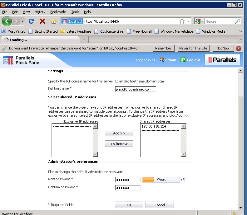 ![]() Nhập "N" để tiếp tục ![]() Nhập "N" để tiếp tục ![]() Nhập "1" để tiếp tục ![]() Để mặc định nhập "N" để tiếp tục cài plesk 10 ![]() Nhập "3" để tùy chọn thành phần cài đặt ![]() Chọn các thành phần plesk 10 bạn muốn cài đặt bằng cách nhập vào số thứ tự của các thành phần Sau khi chọn xong, bạn nhập "N" để tiếp tục ![]() "Nhập "N" để tiếp tục" ![]() Nhập "N" để tiếp tục ![]() Quá trình cài đặt đang diễn ra bên dưới ![]() Ra ngoài uống cofe ![]() Sau khi cài đặt xong, bạn truy cập vào bằng cách (nhập ip của server 123.30.130.61 và port của plesk 8443) https://123.30.130.61:8443 or https://quantrinet.com:8443 Nhập: username: admin password: 123456 (Pass này tui đặt ở bước cài đặt phía trên) Điền thông tin vào chọn theo hình bên dưới chú ý: phần đặt password mới cho tài khoản admin (quản trị plesk) ![]() Điền thông tin vào ![]() Xin và upload file: license dùng thử lên ![]() Tạo Customer và domain ![]() Done Chúc các bạn thành công ![]() |